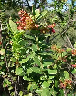 Gaylussacia plants are often a component of an oak-heath forest.[2][3] They are deciduous or evergreen shrubs growing to a height of 0.4–1.8 metres (1 ft 4 in – 5 ft 11 in).