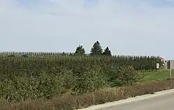 Gays Mills was also the home of the Twining apple-growing family. One of the Twinings took his apples to the World's Fair, where they were a great success, generating mild fame for Gays Mills. Twining and his companions are honored with a historical marker on a hill overlooking the village. Consequently, apples are grown heavily in Crawford County, with numerous commercial orchards surrounding the village.[5]
