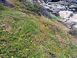 Gazania maritima is a perennial species, with a spreading growth-form (similar to Gazania rigens) and stems that spread and form mats.