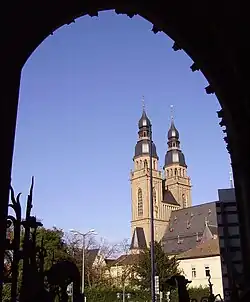 The Gedächtniskirche der Protestation (English: The Memorial Church of the Protestation) is a United Protestant church of both Lutheran and Reformed confessions in Speyer, Rhineland-Palatinate, Germany, that commemorates the Protestation at Speyer in defense of the evangelical faith, specifically Lutheranism. Built between 1893 and 1904, the church was constructed in memory of the protest that took place at the Diet of Speyer by the Protestant rulers of the Holy Roman Empire in 1529. The tower is the tallest bell tower in the whole Palatinate at 100 metres (330 ft).[1]