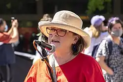 ![]() Kearney at a rally for refugee rights in 2022 | |