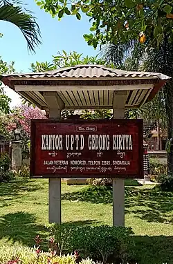 Gedong Kirtya library was founded in 1928 by the Dutch in what was then their colonial capital of the Lesser Sunda Islands, Singaraja, and named for the Sanskrit word 'to try'. It is in the complex of Sasana Budaya, the old palace of the Buleleng Kingdom.[1]
