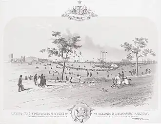 - ^ Gill, S, T. (1853). "Laying the foundation stone of the Geelong & Melbourne Railway". State Library Victoria. Retrieved 1 June 2020.