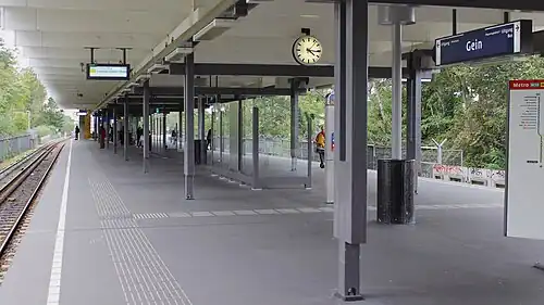 Gein is an Amsterdam Metro station in the Gaasperdam area of Amsterdam, Netherlands. The station opened in 1982 and is served by 2 lines, the 50 (Isolatorweg - Gein) and 54 (Amsterdam Centraal - Gein).