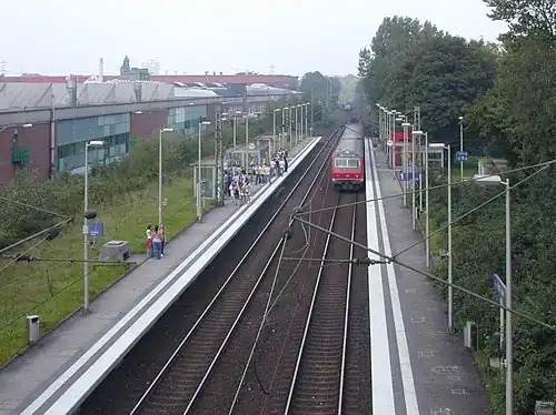 Gelsenkirchen-Rotthausen is a railway station on the Essen–Gelsenkirchen railway situated in Gelsenkirchen in western Germany. It is classified by Deutsche Bahn as a category 6 station. It is served by Rhine-Ruhr S-Bahn line S2, and by bus route 381 (Gelsenkirchen – Erle – Resse/Buer), operated by BOGESTRA.[5][6]