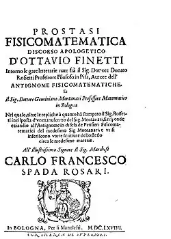 - Prostasi fisicomatematica. In Bologna: Emilio Maria & fratelli Manolessi. 1669. Retrieved 15 June 2015.