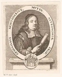 Geminiano Montanari (1 June 1633 – 13 October 1687) was an Italian astronomer, lens-maker, and proponent of the experimental approach to science. He was a member of various learned academies, notably the Accademia dei Gelati. Montanari's famous students include Domenico Guglielmini, Francesco Bianchini, Gianantonio Davia and Luigi Ferdinando Marsili.