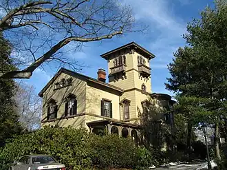 The Gen. Samuel Chandler House is a historic house at 9 Goodwin Road in Lexington, Massachusetts. The two story wood-frame house was built in 1846 to a design by architect Isaac Melvin. The Italianate style house features a bracketed shallow-pitch roof, and a three-story campanile-style tower with a steeply pitched pyramidal roof and three-part round-arch windows with balconies at its top level. A hip-roof porch with arch-forming brackets extends along one side.[2]