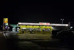Gene & Jude's is a popular and iconic hot dog stand in River Grove, Illinois,[1] founded in 1946 by Chicago city worker Gene Mormino.[2] The stand is famous for its limited approach to the Chicago-style hot dog, its toppings departing from tradition by including only mustard, onions, relish, sport peppers and fresh cut French fries placed on top, known as a Depression Dog.[3] The menu is limited to hot dogs, double dogs, tamales and fries, and notably lacks ketchup.[2]