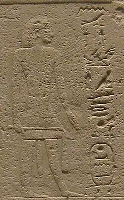 The Genealogy of Ankhefensekhmet or Genealogy of the Memphite priestly elite (Berlin 23673) is an ancient Egyptian relief – sometimes referred to as a stela – normally identified as having been made during the 8th century BCE, under the reign of pharaoh Shoshenq V of the late 22nd Dynasty.[1] A surviving block is kept at the Egyptian Museum of Berlin. The relief was issued by a priest called Ankhefensekhmet with the purpose of illustrating his own genealogy. The relief traces back Ankhefensekhmet's sequence of ancestors up to 64 generations before, with the earliest individual, Ptahemheb, identified by Ritner as being from the time of Nebhepetre (Mentuhotep II) of the 11th Dynasty and alternatively identified by Borchart as being from the time of Nebkaure Khety of the 10th Dynasty.[2] On 25 occasions the genealogy also names the pharaoh or king who was ruling at the time.