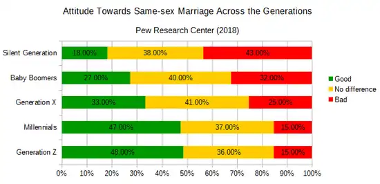 - ^ "Nearly 30% of Gen Z adults identify as LGBTQ, national survey finds". NBC News. January 24, 2024. Retrieved March 18, 2024.