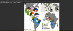 - ^ a b c d e f Mathias, Rasika Ann; et al. (11 October 2016). "A continuum of admixture in the Western Hemisphere revealed by the African Diaspora genome". Nature Communications. 7 (12522) 12522. Bibcode:2016NatCo...712522M. doi:10.1038/ncomms12522. PMC 5062574. PMID 27725671. S2CID 11070628.