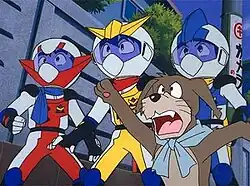 The first of the two reinforcements. Its transforming command is "Miracle Change (ミラクル変形, Mirackuru Henkei)", as opposed to the "Miracle Change" of the previous robots(although later on they do use Miracle Change for it a few times). Its pilot is Red Ganbare, and the cockpit is close to what Rikiya is used to in King Elephant. It launches from underneath a railroad crossing. In beast mode it can use its claws and teeth to attack, as well as fire shots form the tail, and in robot mode it has: