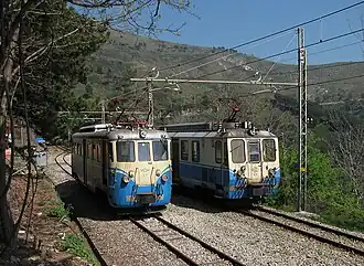 On January 17, 1974, the A3 electromotive derailed due to a landslide in Sardorella, causing one death. On October 31 of the same year the entire line was placed under seizure by order of the judiciary and can be reopened to traffic only after the completion of the most urgent works.[9] Thus in 1975 a work of renewal of the armament was carried out, with 36 kg/m rails instead of the original 27 kg/m rails and a third central rail in the curved sections to limit the risk of derailment. These interventions made it possible to raise the maximum speed of the line.