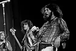 Gentle Giant's music was considered complex even by progressive rock standards, drawing on a broad swathe of music including folk, soul, jazz, and classical music.[3] Unlike many of their progressive rock contemporaries, their "classical" influences ranged beyond the Romantic and incorporated medieval, baroque, and modernist chamber music elements. The band also had a taste for broad themes for their lyrics, drawing inspiration not only from personal experiences but from philosophy and the works of François Rabelais and R. D. Laing. In 2015 they were recognised with the lifetime achievement award at the Progressive Music Awards.[4]