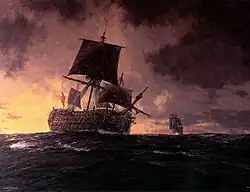 Geoff Hunt is a leading figure in marine art. According to Artist Partners Ltd he is ‘one of the world’s finest painters of 18th and 19th century ships.’[1] Hunt is perhaps best known in popular perception for his depictions of naval scenes adorning the covers of Patrick O’Brian’s bestselling ‘Aubrey-Maturin’ novels, a connection he began in 1988. He also has painted scenes from C.S. Forester's Horatio Hornblower series and Julian Stockwin's Thomas Kydd series. As William Delmont notes, ‘Though he was a renowned book cover artist before his partnership with O’Brian, Hunt’s work gained more widespread commercial success through the novels.’[2] In a 2008 interview with Artist & Illustrators magazine, Hunt asserted ‘I find ships awesome, fascinating, and slightly frightening.’[2]