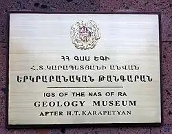 - ^ "Geological Museum Named After H. Karapetyan - Free with Yerevan Card | Museums in Yerevan". yerevancard.com. Retrieved 2019-02-08.