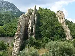 The Caledonian orogeny affected the region in the Middle Devonian through the Carboniferous. Carbonates deposited, along with a basin filled with turbidites between two landmasses. Lakes were common during the late Paleozoic, depositing anthracite coal now found north of Varna and Sofia. Permian rocks reflect terrestrial sedimentation and dry land conditions and contain some coal as well as thick conglomerate layers.[2]
