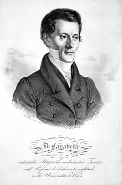 Georg Carabelli was a court dentist to the Austrian Emperor and co-founder of the stomatology clinic at the University of Vienna. The Cusp of Carabelli, a small additional cusp sometimes found on the mesiolingual corner of an upper molar, was first illustrated in his textbook of oral anatomy, published in 1842, and later described in his handbook of dentistry, published posthumously in 1844. He wrote numerous textbooks and monographs.