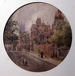 His main work was the decoration of the Gladstone Dessert Service, presented by the Liberal Working Men of Derby to Prime Minister William Ewart Gladstone in 1883. A watercolor by Holtzendorff (c. 1882), with a view of Becket Street, Derby, with the Derby Museum and Art Gallery in the background, is the only remaining study on paper linked to the Gladstone service.[3]