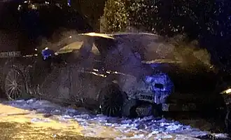 Picture shows the aftermath of Niedermeier's car set on fire in 2017.