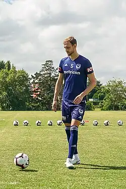 Niedermeier made his A-League debut on 20 October 2018 in a 2–1 loss to Melbourne City in the opening round of the 2018–19 season.[181] After having started the next four matches he sustained two concussions and a mid-foot ligament sprain in the following weeks, limiting his availability.[182][183] On 14 April 2019, Niedermeier scored his first A-League goal — the match-winner in a 2–1 victory over Central Coast Mariners — securing Melbourne Victory’s place in the Finals Series.[184][185] Melbourne finished third in the regular season and progressed to the Elimination Final, where Niedermeier scored the opening goal in a 3–1 win over Wellington Phoenix at AAMI Park on 3 May 2019.[186] The team’s campaign ended in the Semi-Finals with a defeat to Sydney FC at Jubilee Oval.[187]