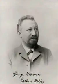 Wissowa studied classical philology under August Reifferscheid at the University of Breslau from 1876 to 1880, then furthered his studies in Munich under Heinrich Brunn, a leading authority on Roman antiquities. Having obtained his habilitation at the University of Breslau in 1882, he received a travel scholarship from the German Archaeological Institute and went to Italy for a year. After that he taught as Privatdozent in Breslau from 1883 to 1886, when he accepted a chair at the University of Marburg (as professor extraordinarius) where he was awarded a full professorship in 1890. In 1895 he relocated to Halle as a successor to Heinrich Keil. After suffering two severe strokes in 1923, he was retired in 1924.[1]