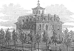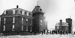 Jarvis created an endowment to found Jarvis Hall, a liberal arts, grammar and military college for males in 1869[16][17] that was a predecessor of the Colorado School of Mines.[18] Randall coordinated the creation of the university in Golden, Colorado, which operated from 1870 until 1874, when it was destroyed by a fire.[16] The college operated in another Golden building from 1878 to 1882.