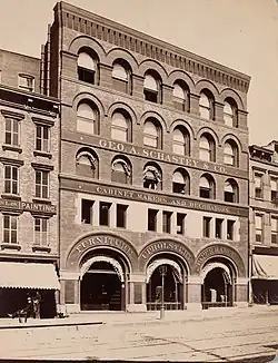Facade of the George Schastey & Co. showroom, 1681–1683 Broadway, near West Fifty-Third Street (ca 1885) (actual location of the Broadway Theatre)