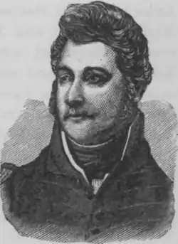 Armistead was born to the former Lucinda Baylor Page and her husband John Armistead at his Newmarket Plantation in Caroline County, Virginia (now in Milford).[2] His ancestors had emigrated from Britain to Gloucester County in the Virginia colony, and moved to what was then the frontier before the American Revolutionary War, during which they aligned with the Patriot cause. The family included five brothers, who also served as military officers during the War of 1812. John Baylor Armistead (d. after 1844) was captain of the U.S. Light Dragoons (1799-1800); William Armistead moved to Prince William County, Addison Bowles Armistead (D. Feb. 10, 1813) was lieutenant of the 7th U.S. Infantry (1799-1800) and an artillery and engineering captain after 1806, Lewis Gustavus Adlphyus Armistead would become a captain of rifleman in the Army and die Sept 17;, 1814 in a sortie from fort Erie, and Walker Keith Armstrond (1785-1845) a graduate of the U.S. Military Academy of would become a breveted brigadier general in 1828.[3][4][5][6] While all five brothers served in the War of 1812, the most distinguished (besides himself) was Walker Keith Armistead, who graduated from West Point in 1803 and served for 42 years as a commissioned officer, including as the Army's chief engineer (from 1818 to 1821), then as colonel of the 3d Artillery Regiment until his death in 1845.