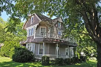 George B. Hamilton House is a historic home located in the city of Cuba in Crawford County, Missouri. It was built around 1896, and is a 2+1⁄2-story, irregular shaped, Queen Anne style frame dwelling with Eastlake movement detailing. It has multiple projecting bays and features fishscale shingles and elaborate spindlework in gable ends and porch balconies.[2]: 6