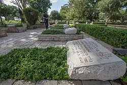 Beurling's coffin was kept for three months in a warehouse in the Verano Monumental Cemetery, as nobody had claimed the body. Then his widow, Diana Whittall Gardner, had him buried in the Cimitero Acattolico behind the Cestia Pyramid, between the graves of Percy Bysshe Shelley and John Keats. In November 1950, two and half years after his death, Beurling's casket arrived at Haifa Airport. His coffin, draped with the blue and white Israeli flag, was laid in a nearby air force base, where an honour guard of young airmen mounted a silent watch. During the long funeral in the streets of Haifa, Israeli Air Force aircraft paid homage to Beurling. At last, he was re-interred in the military cemetery at the foot of Mount Carmel. The grave is marked, as are the others in Israel Defense Forces cemeteries, with only name, serial number and rank: for Beurling that of segen (lieutenant).[57]