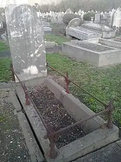 On 20 October 1883, Coulthard was reportedly "confined to his bed in a dangerous state".[107] Delirious as he succumbed to the disease, Coulthard made apparent references to his suspension from the VFA, saying: "It is not true they're going to disqualify me. Surely they won't disqualify me."[55] News of his death at 223 Lygon Street[108] in Carlton, Victoria on 22 October[109] was met with an outpouring of public grief, and a large procession followed Coulthard's remains from his Lygon Street home to his funeral.[110] He was buried at the Melbourne General Cemetery next to Princes Park, home of the Carlton Football Club.[107][111]