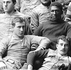 Dygert enrolled at the University of Michigan and played five years at the fullback and halfback positions for the Michigan Wolverines football team from 1890 to 1894. As a freshman in 1890, Dygert played on the first racially integrated Michigan football team,[2][3] a team that featured Dygert and George Jewett, both of whom grew up in Ann Arbor, playing in the same backfield.[4] (After Jewett, another African-American did not play football at Michigan until Willis Ward did so in the 1930s.) The 1890 Michigan team photograph shows Dygert and Jewett seated next to each other. (Cropped image at right.)