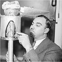 ![]() G.E. Pendray with rocket fueling device (1932) | |