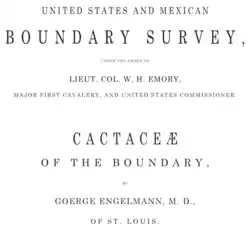 - Cactaceae of the Boundary. In: United States and Mexican Boundary Survey, under the Order of Lietu. Col. W. H. Emory, Major first Cavalry, and United States Commissioner. Vol 2, Teil 1, Cornelius Wendell, Washington 1859, (online) Archived 2015-04-28 at the Wayback Machine.