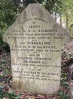 He died on 21 June 1924, aged 84, and was buried in the Kilburne family grave on the eastern side of Highgate Cemetery.