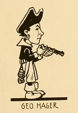 ![]() Caricature of Hager, done by one of the members of the Seattle Cartoonists' Club for the club's 1911 book about Seattleites | |