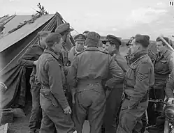 After a period of time at No. 52 Operational Training Unit, Hill was posted to No. 421 Squadron. A flight lieutenant at the time, two months later he was transferred to No. 453 Squadron.[1] This was a Royal Australian Air Force unit that had just been formed at Drem, and was equipped with Supermarine Spitfire fighters.[4] After a further two months, he returned to duty with a RCAF unit, this being No. 403 Squadron.[1] His new unit was based at Catterick, being rested after involvement in Fighter Command's Circus offensive, and operated Spitfires. On 19 August, the squadron made several sorties flying from Manston in support of Operation Jubilee, the Allied landings at Dieppe. Hill made his first claims during the operation, claiming, with another pilot, a share in the destruction of a Focke-Wulf Fw 190 fighter, another Fw 190 damaged and a third as probably destroyed. Afterwards, the squadron returned to Catterick.[1][5]