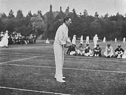 In 1889, Hillyard played the Wimbledon singles for the first time. He lost his quarter-final match against Harry Barlow in straight sets. He reached the doubles final twice at Wimbledon with Ernest Lewis in 1889 and 1890, but lost to the Renshaw brothers and Joshua Pim and Frank Stoker, respectively. Alongside Harry Scrivener, he won the doubles title at the British Covered Court Championships in 1890 and 1891. The following years, his focus shifted again to cricket, playing for Leicestershire, until 1896 when he won the singles, doubles, singles handicap and mixed doubles (with his wife) at Monte Carlo.[10] In 1897, he won the first staging of the International German Championships at Hamburg, beating George Ball-Greene in five sets in the final. He repeated his success at Hamburg in 1900. At Wimbledon singles, early losses enabled him to win the All England Plate in 1898, and reach the final in 1899. At the 1901 Wimbledon singles, he beat Laurence Doherty in the third round before losing in the quarter-finals to Arthur Gore.[11]