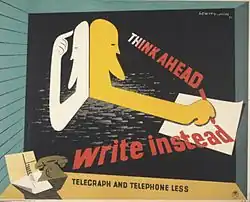 Think Ahead Telegraph and Telephone Less (Art.IWM PST 8414) (1944) by LeWitt-Him for the GPO