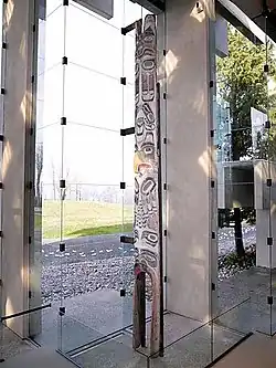 George Hunt's descendant Tony Hunt, a Kwakwaka'wakw hereditary chief and artist, in 1986 carved a replacement totem pole, called Kwanusila, replicating the original design and colors. It was installed at the lakeside park. Hunt's work is also held by the St. Louis Art Museum, the Fine Arts Museums of San Francisco and Chicago's Field Museum, in addition to private collectors.[4]