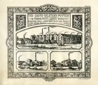 Prince Albert presented George Jennings with the Medal of the Society of Arts for his 'indiarubber tube taps and tube' for water supply. By now he was prospering and had also established George Jennings South Western Pottery at Parkstone Pottery in Dorset, manufacturing water closets, salt-glaze drainage, sanitary pipes and architectural details, such as terracotta moulding for Lady Wimborne Cottages of the Canford estate. Parkstone was the site of several industrial undertakings, the largest being George Jennings South Western Pottery, which had its own steam locomotive, that ran on a private branch line from Parkstone Station.