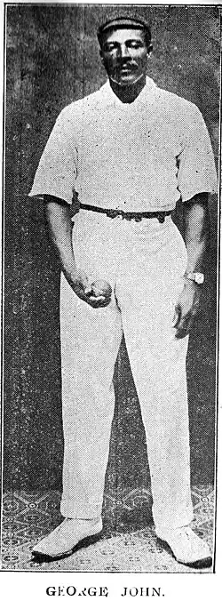 George John was a very fast bowler in his prime and could cut the ball into the batsmen. He toured England with West Indies side in 1923 but by then was past his best. He claimed 90 wickets at 14.68 in all matches, 49 of them at 19.51 in first class matches. Against Glamorgan he took 10 for 147 and at Scarborough, with George Francis, reduced a near Test quality HDG Leveson Gower's XI to 19 for 6 as they were chasing 28 to win in the second innings. John took 5 for 54 for Trinidad against MCC in 1925-26 when he was over forty years of age.