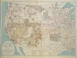 In 1872, the US Congress authorized an ambitious plan to map the portion of the United States west of the 100th meridian at a scale of 8 miles to the inch. This plan necessitated what became known as the Wheeler Survey. The project lasted until 1879, when the Wheeler, King, and Powell Surveys were terminated and their combined work was reorganized as the United States Geological Survey.