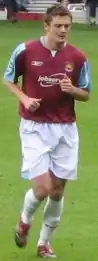 He went on to make 25 appearances in all competitions for West Ham during the 2006–07 season.[6] McCartney scored his first goal for The Hammers, a strong back post header, in a friendly against Roma one week before the start of the 2007–08 season.[10] He scored his first Premier League goal for West Ham in the 1–1 home draw with Bolton Wanderers on 4 November 2007 with a magnificent volley.[11] At the end of the 2007–2008 season McCartney received the runner up Hammer of the Year Award, having played in all 38 Premiership games. McCartney's sale back to his former club Sunderland led to West Ham manager Alan Curbishley resigning after he claimed the player was sold against his wishes.[12]