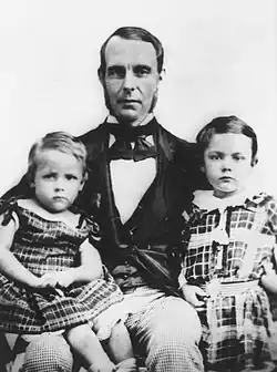 In 1851, George Morison Robertson married Sarah Symonds Humphreys, an Englishwoman from Brighton who was shipwrecked with her family at Waikiki while they were traveling to the California Gold Rush from Australia.[1][13][14][15] They had seven children including three sons and four daughters:[1][16]
