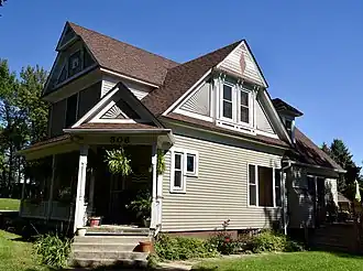 The George Rewerts House is a historic residence located in Defiance, Iowa, United States. It was listed on the National Register of Historic Places in 1991.[1] The historic importance of the house is its association with German immigration into this part of Iowa from 1872 into the 1940s. It is also a fine example of the work of a German immigrant designer and craftsman, and the importance of the local building industry that was established by German immigrants.[2] George Rewerts immigrated to the United States in 1882, and settled in Council Bluffs before moving to Defiance in 1887. He was a carpenter by trade, and worked for the Defiance Lumber Company when he moved here. He bought the company in 1902, the same year he built this house with the assistance of Nels Gregersen and Lee Hulsebus. It is a 2½-story, frame structure with Queen Anne and Stick style influences.[2]