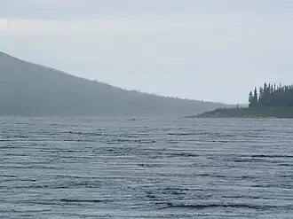 In June 1839, McLean took a party up the George in his search for a convenient overland route between Ungava Bay and Fort Smith (present-day North West River) on Lake Melville.[8] His predecessor Erland Erlandson had accidentally demonstrated its feasibility in 1834,[9] but along a more circuitous route up the Koksoak. Lacking Innu guides, McLean's expedition ended in failure with the discovery of the Grand Falls (now Churchill Falls) on the Hamilton (now the Churchill) and the party retraced its steps.[8] On the eastern shore of Erlandson's Lake (now Indian House Lake), they erected a post called Fort Trial in the winter of 1839–1840 to serve as a waystation and depot on the supply route they had established with Fort Nascopie on Petitsikapau Lake in the interior.[10] Fort Trial—also referenced in HBC correspondence as "Erlandson's Post"[11]—became superfluous with McLean's 1841 discovery of a route through a series of lakes around the falls and its rapids, after which the prosperous Fort Nascopie was supplied from Fort Smith instead. The HBC closed the entire unprofitable Ungava District soon after,[8] abandoning Fort Trial on 15 June 1842[12][13] and Fort Severight around the same time.