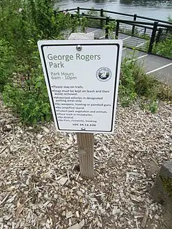 George Rogers Park is a 26-acre (11 ha) public park at intersection of Ladd and South State streets in Lake Oswego, Oregon.[1] This park contains two baseball fields, a soccer field, access to the Willamette River, a memorial garden area, restrooms, a playground, and two outdoor tennis courts.[2] The park also features the Oregon Iron Company Furnace, which was placed on the National Register of Historic Places by the Department of the Interior.[3][4] The park is named after George Rogers—a City Councilman—in appreciation for his devoted efforts to develop and maintain the grounds.[5]